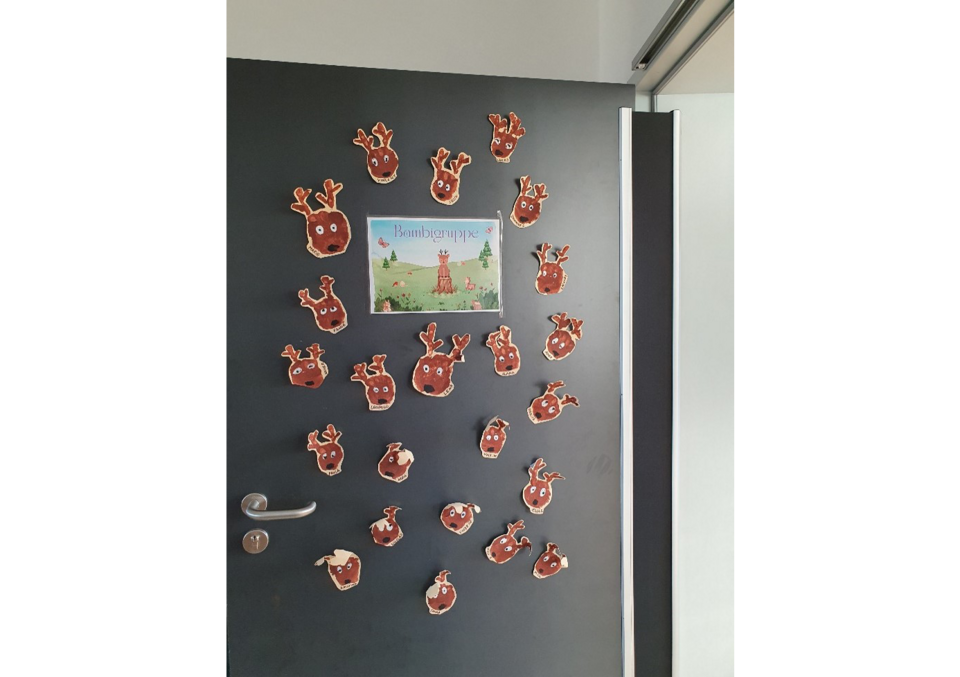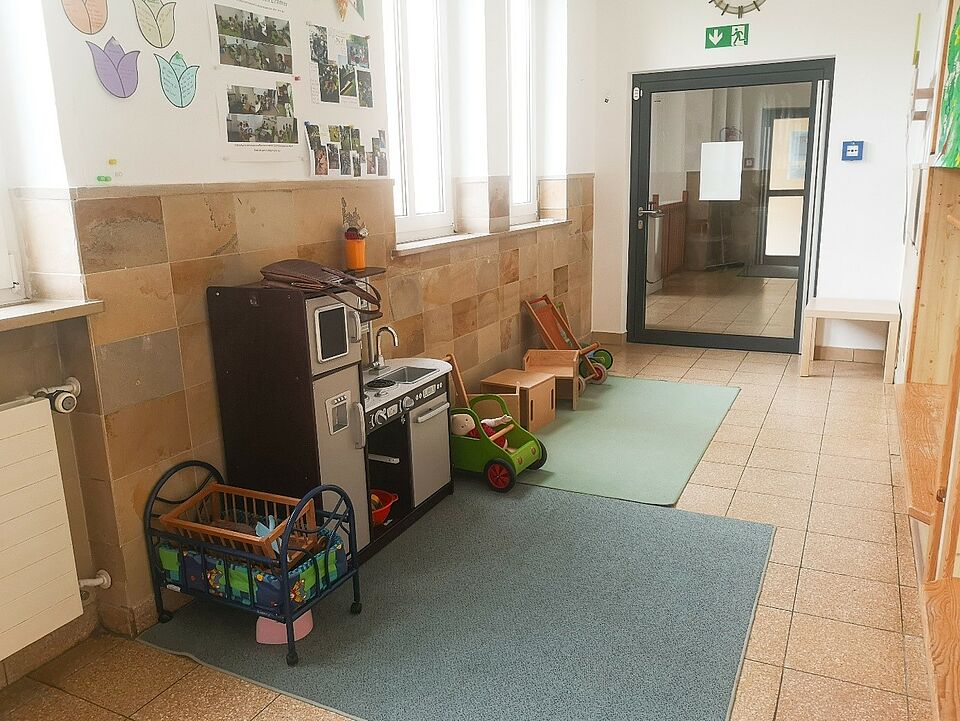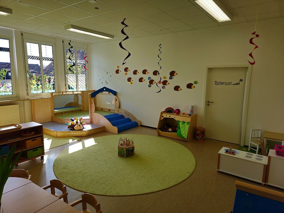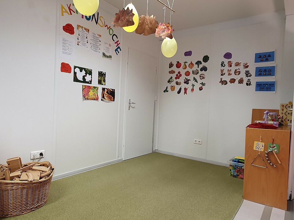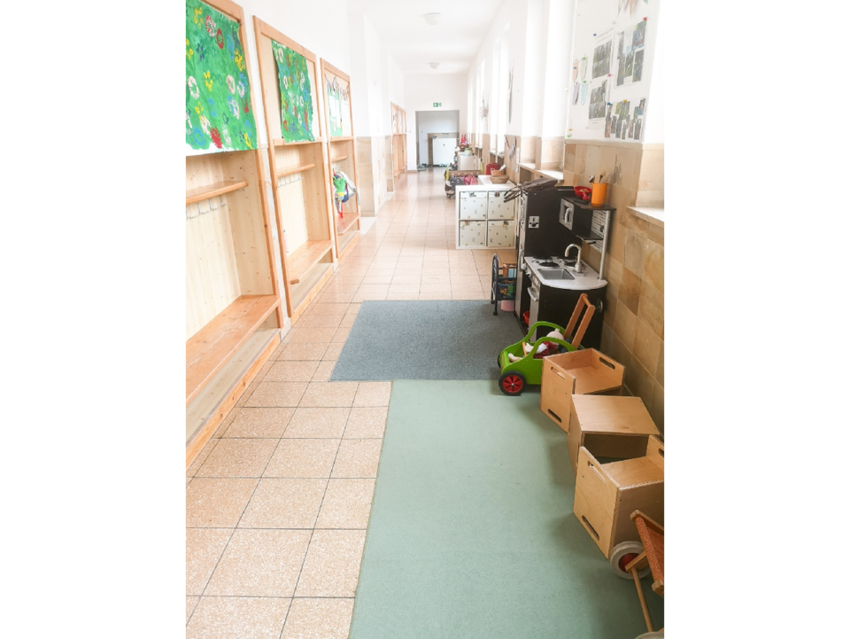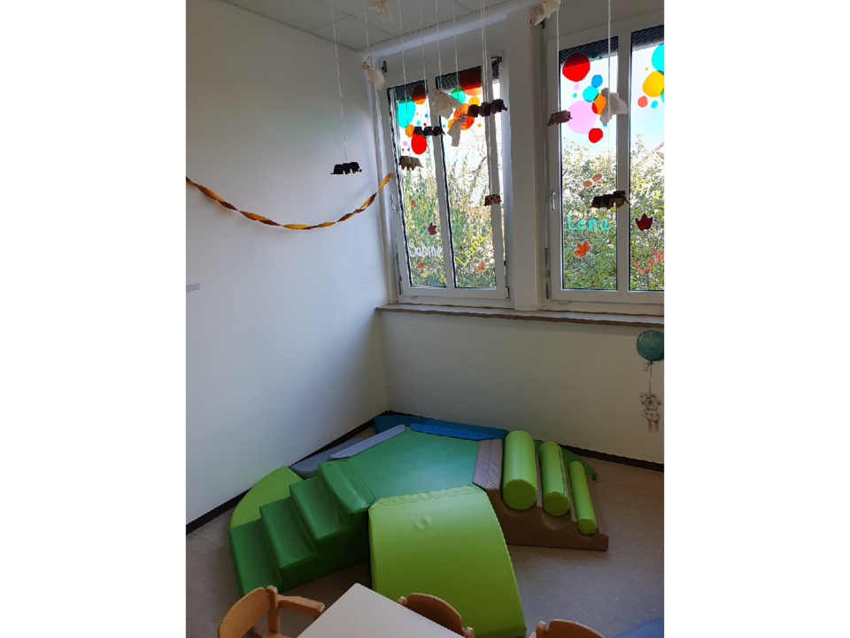 Im Erdgeschoss befinden sich ein Büro, die Hasen- und Igelgruppe und ein Badezimmer.