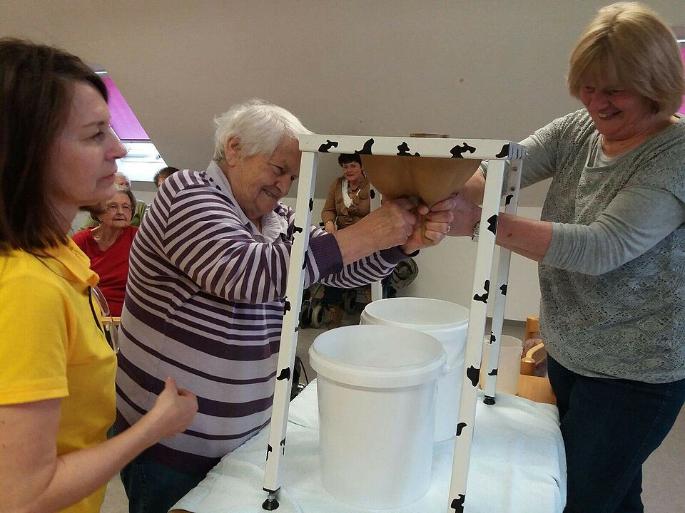 Richtig zünftig ging es letzten Donnerstag im Festsaal des BRK Seniorenwohn- und Pflegeheims St. Barbara zu. Beim "Bayerischen Nachmittag" gab es ein originelles Kräftemessen zwischen Bewohnern, Betreuern und Gästen in bayerisch-olympischen Disziplinen wie Melken und Maßkrugstemmen.