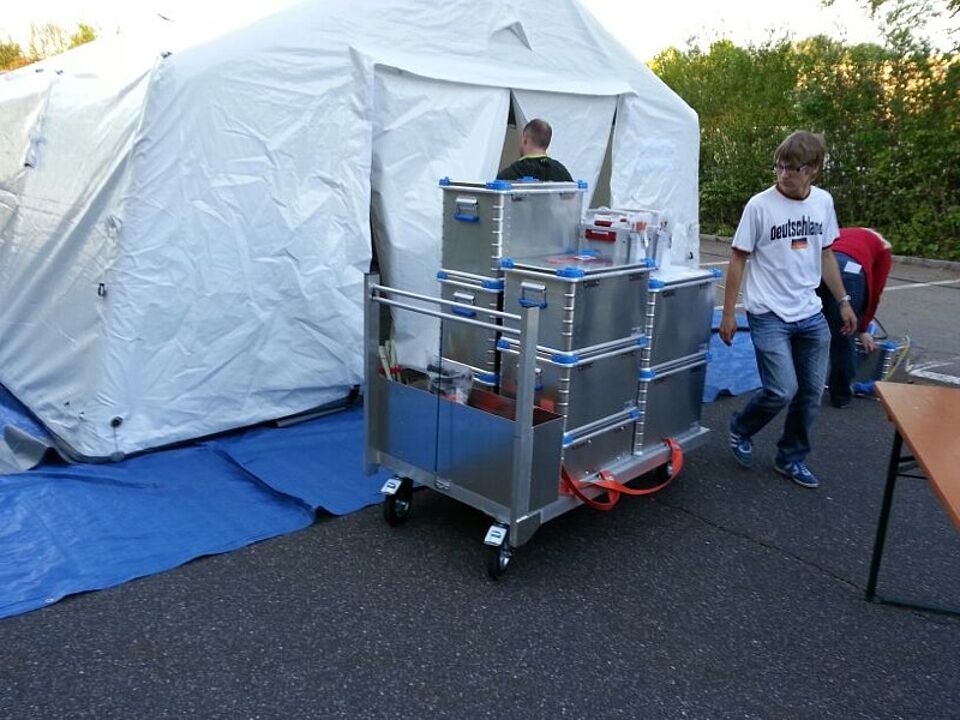 Sulzbach-Rosenberg. Am Dienstag den 14.05.2013 fand im Rahmen des Dienstabends der Bereitschaft Sulzbach-Rosenberg eine Ausbildung zum Thema "Aufbau eines Behandlungsplatzes" statt. Aufgrund eines im Januar neu erhaltenen Fahrzeuges, dem GW-San 25, besteht Übungsbedarf im routinierten Umgang mit den neuen Materialien und Hilfsmittel sowie dem Schnelleinsatzzelt. Stefan Walter, einer der taktischen Leiter der Bereitschaft Sulzbach, erklärte noch einmal eindringlich und verständlich die wichtigsten Schritte um im Ernstfall schnell einsatzklar zu sein und die Patienten sachgerecht versorgen zu können. Zum Tag der Offenen Tür am 09.06.2013 ist eine "Schauübung" geplant bei der der Aufbau eines Behandlungsplatzes zu sehen sein wird. Nach der Schauübung besteht natürlich die Möglichkeit den Behandlungsplatz selbst zu begutachten, Fragen zu stellen und sich zu informieren.