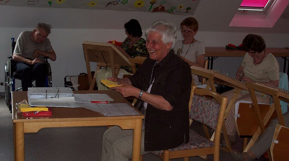 Die Klangbrettgruppe der Caritas-Sozialstation ist seit Jahren mehr als gern gesehener Gast bei den Bewohnern des BRK Seniorenwohn- und Pflegeheims. Jeden Monat kommt die Musikgruppe um Hildegard Kohl ins Heim und unterhält die Senioren mit alt vertrauten Melodien, aber auch originellen Ideen. Jedes Mal wird Wert darauf gelegt, dass die Heimbewohner nicht nur brave Zuhörer sind. Stets werden sie aktiv ins Geschehen mit einbezogen. So war es auch beim Treffen in der vergangenen Woche. Auf dem Programm stand ein "Lieder-Quiz? - also eine große Herausforderung für die Konzentration und vor allem das Gedächtnis der Senioren. Das Fragespiel lieferte erneut den Beweis, dass gerade in der Kindheit und Jugendzeit erlerntes Liedgut, Melodie wie Text, besonders gut im Gedächtnis haften geblieben ist. "Ich kenne ein Lied, da singen zwei Tiere. Sie streiten, wer von ihnen am besten singen kann!? "Das ist das Lied vom Kuckuck und vom Esel!", ertönte es aus den Seniorenreihen, kaum dass Moderatorin Hildegard Kohl die Kurzbeschreibung des zu erratenden Liedes genannt hatte. Selbstverständlich wurde das Lied dann auch - begleitet von der Klangbrettgruppe - gemeinsam angestimmt. Ähnlich rasch wurden die Lieder "Die Gedanken sind frei?, "Alle Vögel sind schon da? und "Am Brunnen vor dem Tore? erraten. Schwieriger zu entschlüsseln waren die Stichworte zum Lied "Kein schöner Land?. Dieses wurde erst erkannt, als es von den Musikgruppe angespielt wurde. Bei der Quizstunde sollte auch die Bewegung nicht zu kurz kommen. Nach dem Erraten des "Jägers aus Kurpfalz? wurde auf dem Stuhl geritten, beim "Wandern ist des Müllers Lust? flott marschiert, bei der "Vogelhochzeit? das Fliegen probiert und zu "Muss i denn? rhythmisch geklatscht. Sichtlich Spaß machte auch das abschließende Spiel von der "Tante aus Amerika?.