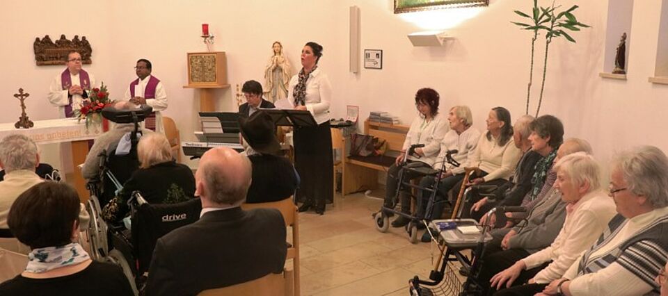 Bei der besinnlichen Andacht in der Hauskapelle sprachen Stadtpfarrer Johannes Kiefmann und Pfarrvikar Hruday Kumar Madanu Gebete und Lesungen. Die Fürbitten trug der ehemalige Heimleiter Erich Gebhardt vor. Unter den Zuhörern weilte nach längerer Krankheit auch wieder Pfarrer Josef Wittmann, über dessen Anwesenheit sich die Heimbewohner und das Pflegepersonal besonders freuten.